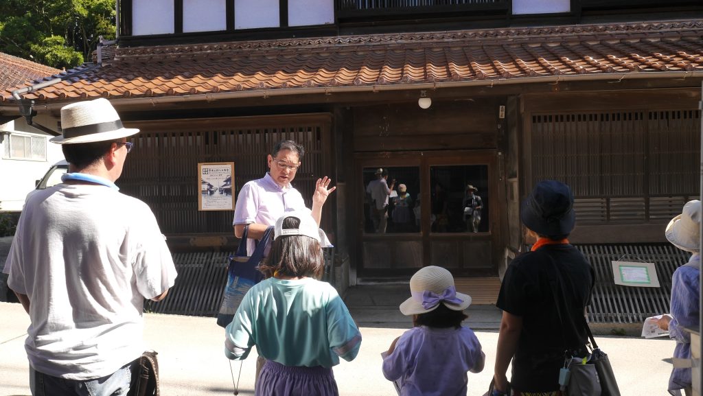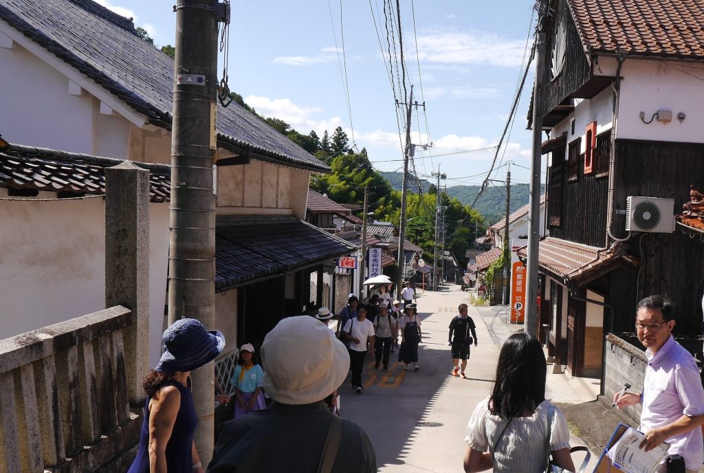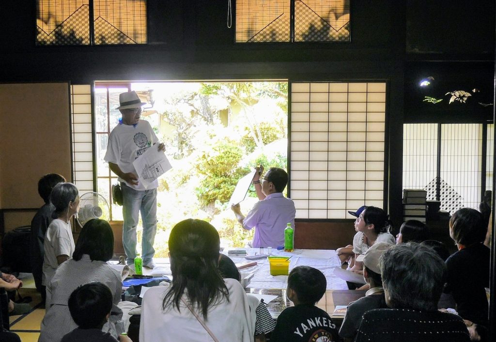 2024年8月17日、第1回白市町家夏休みスケッチ大会(主催NPO法人白市町家保存会)が開催され、小学生から大人まで30人が参加しました。一級建築士、尾道市立大学非常勤講師の渡邉義孝先生の案内で白市の町家の見どころを解説していただき、それぞれお気に入りの場所でスケッチ。伊原正三家住宅の座敷に集まって、それぞれの作品を披露しあい、元美術教師の高垣仁治さんに講評いただきました。白市の景観に目を向け、町家の魅力を発見、スケッチを楽しむ機会となりました。